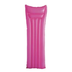 Luchtbed in felle unikleuren. Het hoofdkussen heeft een 2 kamer ontwerp. Incl. reparatie patch. In 3 kleuren assorti: roze, groen en blauw. Voor 1 persoon met een max. gewicht van 90 kg. Van 0,18 mm vinyl. Afmeting: 170x54x15 cm.