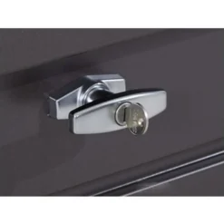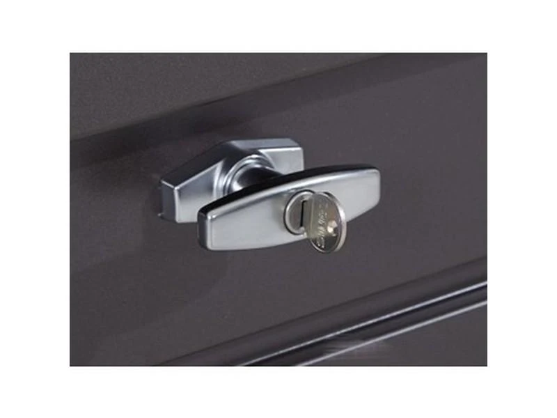 Deksel is afsluitbaar, draaigreep cilinderslot.