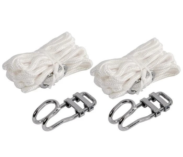 2 stevige en gemakkelijk te bevestigen touwen met stalen haken.