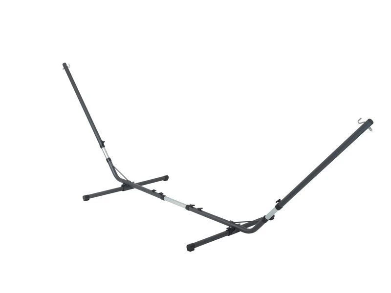 Een stevige universele hangmatstandaard. Een stalen frame om een hangmat in te bevestigen. Doordat het frame zowel in de lengte als in de hoogte te verstellen is, past vrijwel iedere hangmat. Geschikt voor hangmatten met een totale lengte van 285 tot 385 centimeter. De hoogte is verstelbaar van 105 tot 135 centimeter. De totale afmetingen van het frame zijn (lxbxh): 400×150 centimeter. Maximaal draagvermogen: 150 kilogram. Maximaal draagvermogen: 150 kilogram.