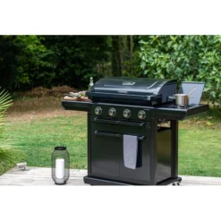 Samen met een groot, geëmailleerd kookoppervlak is deze barbecue perfect voor het bereiden van een breed scala aan fresco maaltijden. De krachtige zijbrander kan worden gebruikt om bijgerechten voor bij het gegrilde voedsel te bereiden, zodat u met een gemak een uitgebreid feestmaaltijd kunt bereiden.