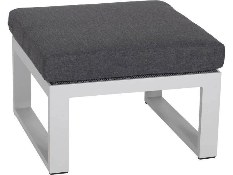 Moderne lounge voetenbank welke uitstekend gecombineerd kan worden met de pina colada loungeset. Aluminium frame, zitting van textileen en een kussen welke vuil en waterafstotend is.