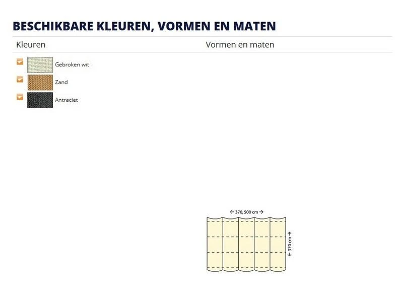 Nesling coolfit harmonica schaduwdoek 3,7 meter breed 5 meter uitval