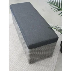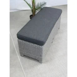 Dit handige 2-zits bankje is bij veel tuinsets combineerbaar. Het bankje is gemaakt van een aluminium frame met daar omheen een 10 mm – halfronde vlechtwerkdraad in de kleur blended grey. De bankje wordt uiteraard geleverd inclusief antracietkleurige kussen.