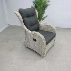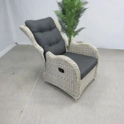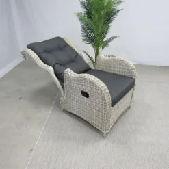 De Riverside gasveerverstelbare lounge stoel, is gemaakt van een aluminium frame met daar omheen een 6,5 mm halfrond vlechtwerkdraad in de kleur earl natural inclusief antracietkleurige zit- en rugkussens. Deze stoel wordt geleverd met voetenbank. Door de verstelling van de rug, kunt u altijd zitten op de door u gewenste manier.