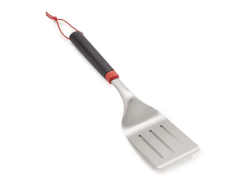 Probleemloos keren van burgers en steaks van de barbecue halen met deze roestvrijstalen spatel. Deze essentiële barbecue-accessoire is lang genoeg om je hand ver weg te houden van de warmte en is vaatwasserbestendig.